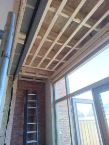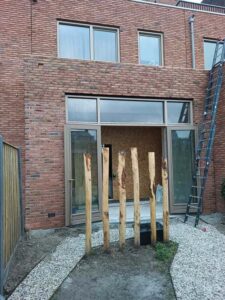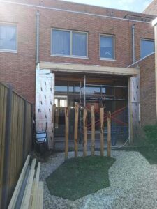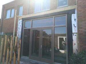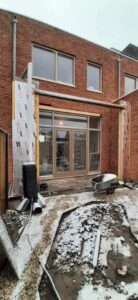 De eigenaren van deze woning kwamen via buren bij mij terecht nadat een andere aannemer een begin had gemaakt met hun uitbouw. Echter nadat de betonvloer en de binnenmuur gereed waren bleek deze aannemer met de noorderzon vertrokken. Na veelvuldig overleg en duidelijke afspraken hebben we ervoor gekozen om deze mensen uit de brand te helpen door de aanbouw af te maken. Dit betekende het metselen van een buitenmuur. Het verplaatsen van het bestaande kozijn, elektrische installatie in orde maken, isolatie en dakleer aanbrengen. Ook hebben we geregeld dat de gehele aanbouw gestuct werd. Al met al een bijzondere opdracht met zeer blije klanten na afronding van de werkzaamheden. Hiermee konden ze ook een onzekere periode achter zich laten voor wat betreft het contact met de eerste aannemer.