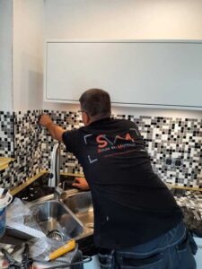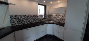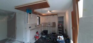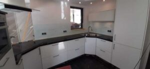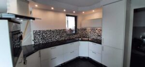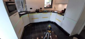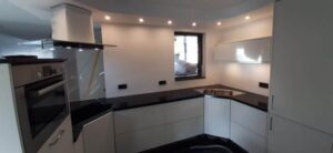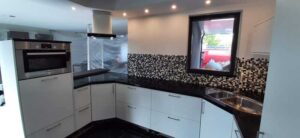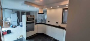 Deze klant wilde graag een nieuwe U-keuken. Echter had hij de speciale wens dat het aanrechtblad van de bestaande keuken terug geplaats zou worden op de nieuwe keuken. Helaas kon de klant geen partij vinden die deze werkzaamheden aan durfde vanwege de kans op breuk van het aanrechtblad. Uiteindelijk is de nieuwe keuken gemaakt door een interieurbouwer en mocht ik de bestaande keuken slopen en de nieuwe keuken plaatsen. Met succes hebben we het bestaande aanrechtblad zonder schade op de nieuwe keuken gemonteerd. Ook hebben we als aanvulling nog een mooie houten bar met blinde montage en chemische ankers aan het bestaande aanrechtblad mogen bevestigen. Ook het benodigde installatiewerk hebben we voor onze rekening genomen.
