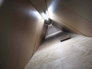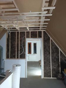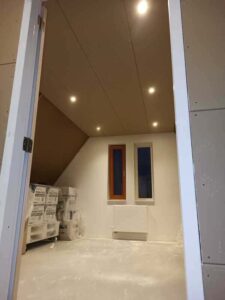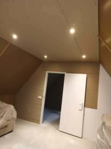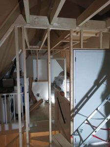 Via werkspot werd ik benaderd door iemand die graag zijn grote zolder verdeeld wilde hebben in 2 kamers, een voorzolder en een vliering. Aangezien de zolder 4 meter hoog en 11 meter lang was waren er diverse mogelijkheden. Uiteindelijk hebben we een grote vliering gecreëerd met een vlizotrap op de voorzolder. Op de ene kamer werd een chill en gameruimte voor de kinderen gerealiseerd en op de andere kamer een kantoor voor de vader des huizes. De elektrische installatie is aangepast. De stucwerkzaamheden heeft de klant laten uitvoeren door een kennis.